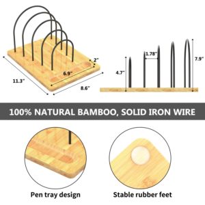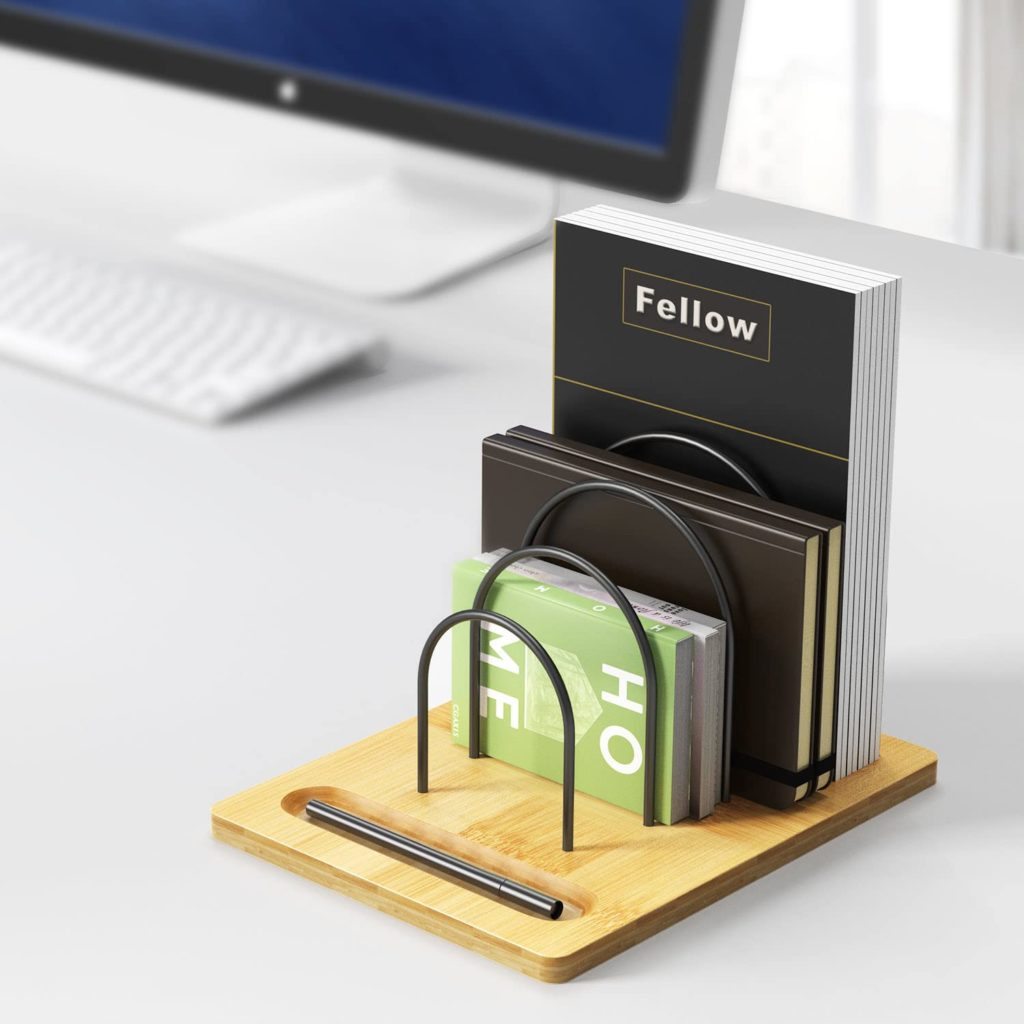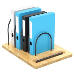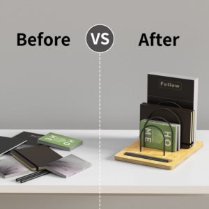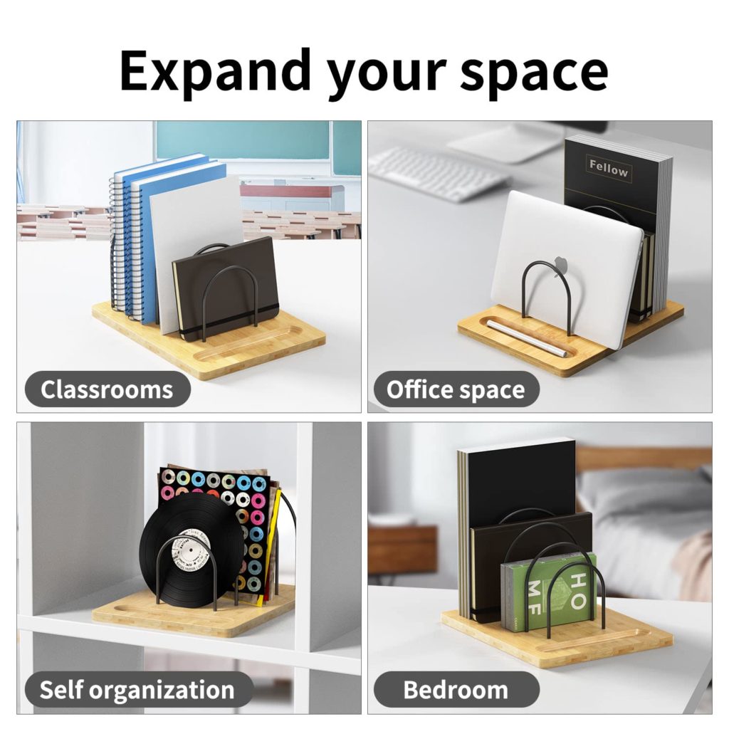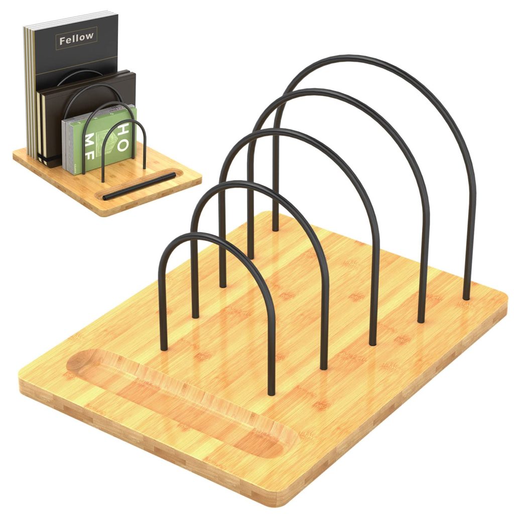 【5 Slot file holder】5 sturdy wires of the vertical offic organizer offer space for files, magazines, books, laptops, mail newspapers, records, pens, and so on. The bamboo base keeps file organizer sturdy and stable.