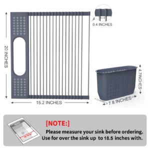 New Design Dimension With Extra Utensil Baskets】: The Fully expanded size of the sink dish drying rack is 20" x 15.2". Please kindly measure your sink size firstly before purchasing this roll up sink drying rack!