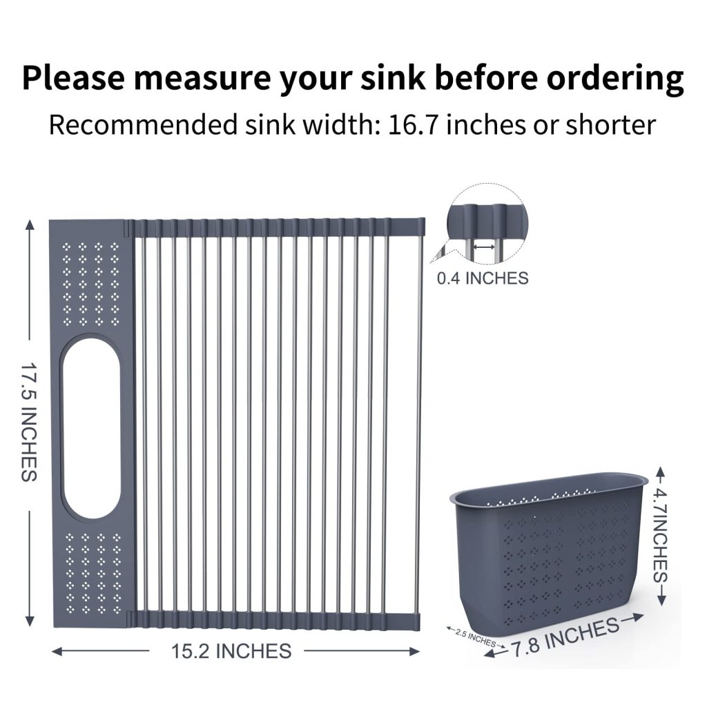 Small Size: The size of the sink dish drying rack is 17.5 x 11 inches, Is suitable for sinks up to 16 inches wide, easily drying any dishes, spoons, fruit, vegetables etc. (NOTE: Recommended sink size: 16 inches or shorter, Only Drying Rack not including the silverware or dishes.).