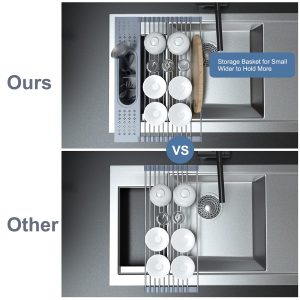 Removable Storage Basket: Our sink dish drying rack comes with a detachable storage basket. store cutlery, chopsticks, spoons and other tableware can be stored in the storage basket. Compared with other dish drying racks, you can dry more tablewares.